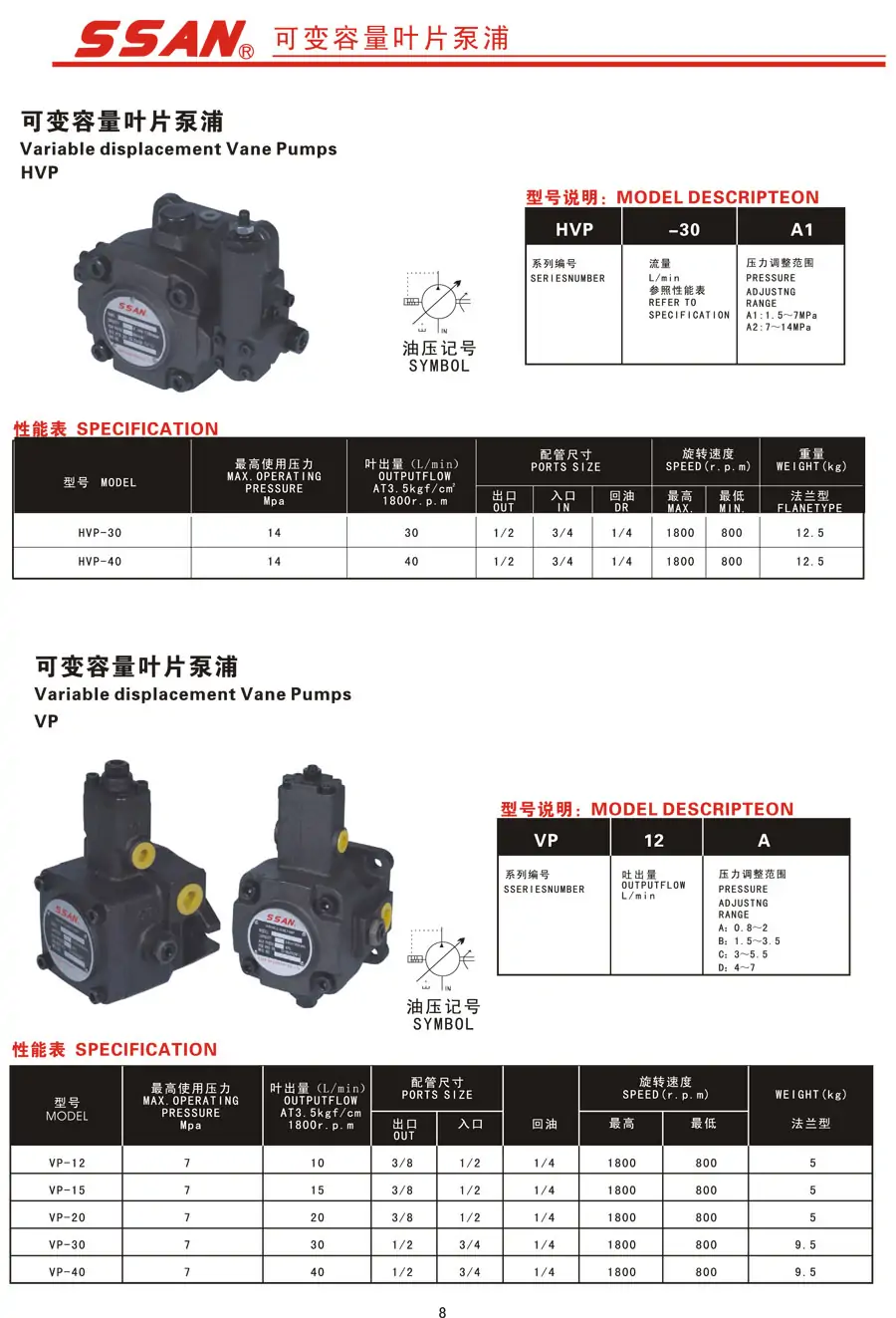 SSAN液壓泵VANE PUMP ROTATION變量葉片泵PV2R3-94FR PV2R2-85FR