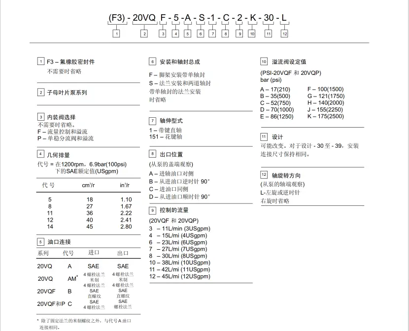 SAMEK太重榆液葉片泵20VQ/20V-2/3/4/5/6/7/8/9/10/11/12/14-1CR